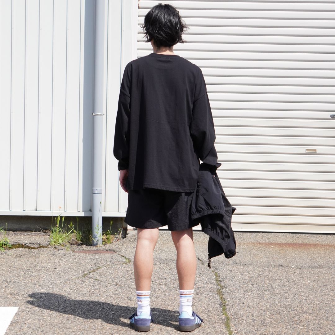 生地はやや薄めのビッグシルエットロングスリーブTシャツ。