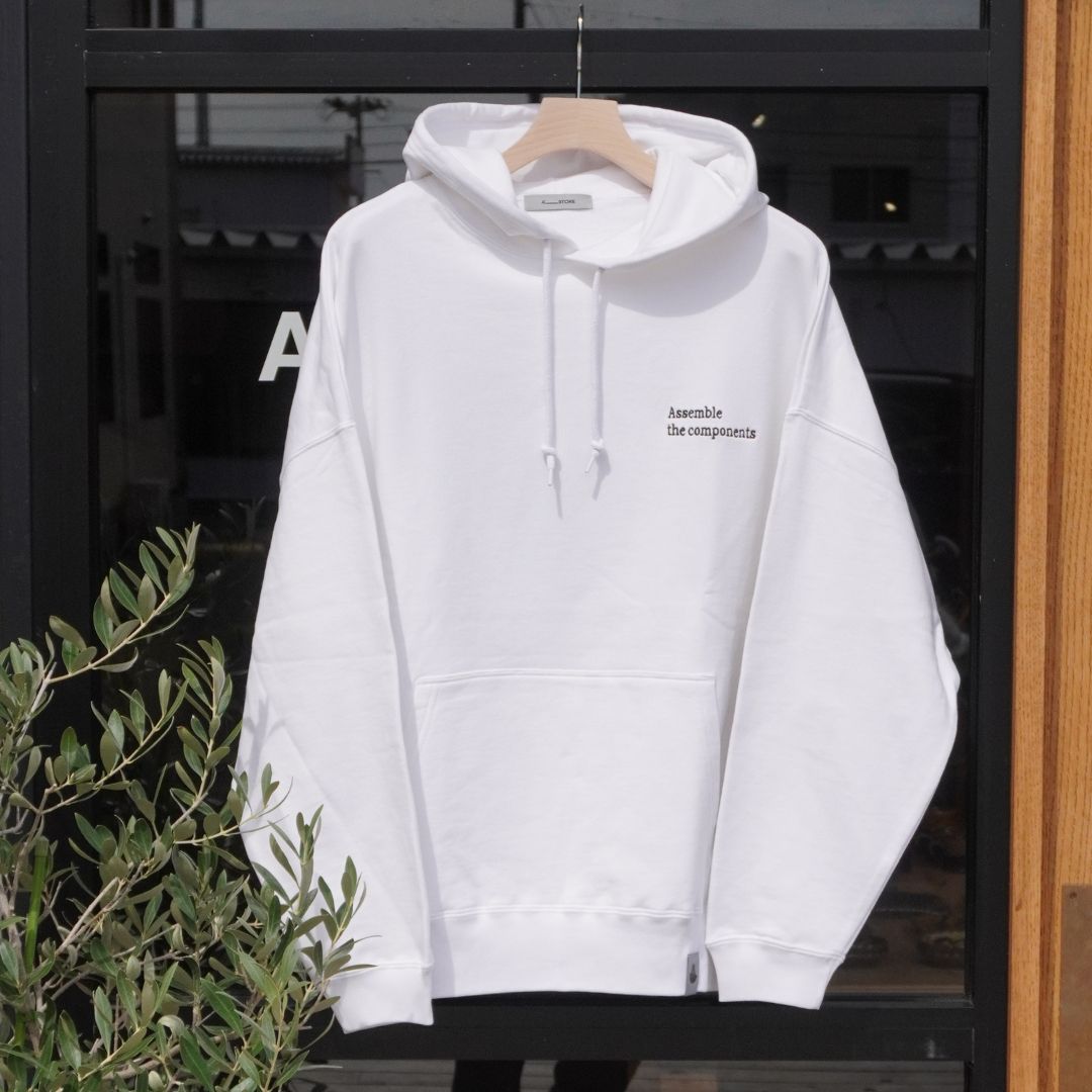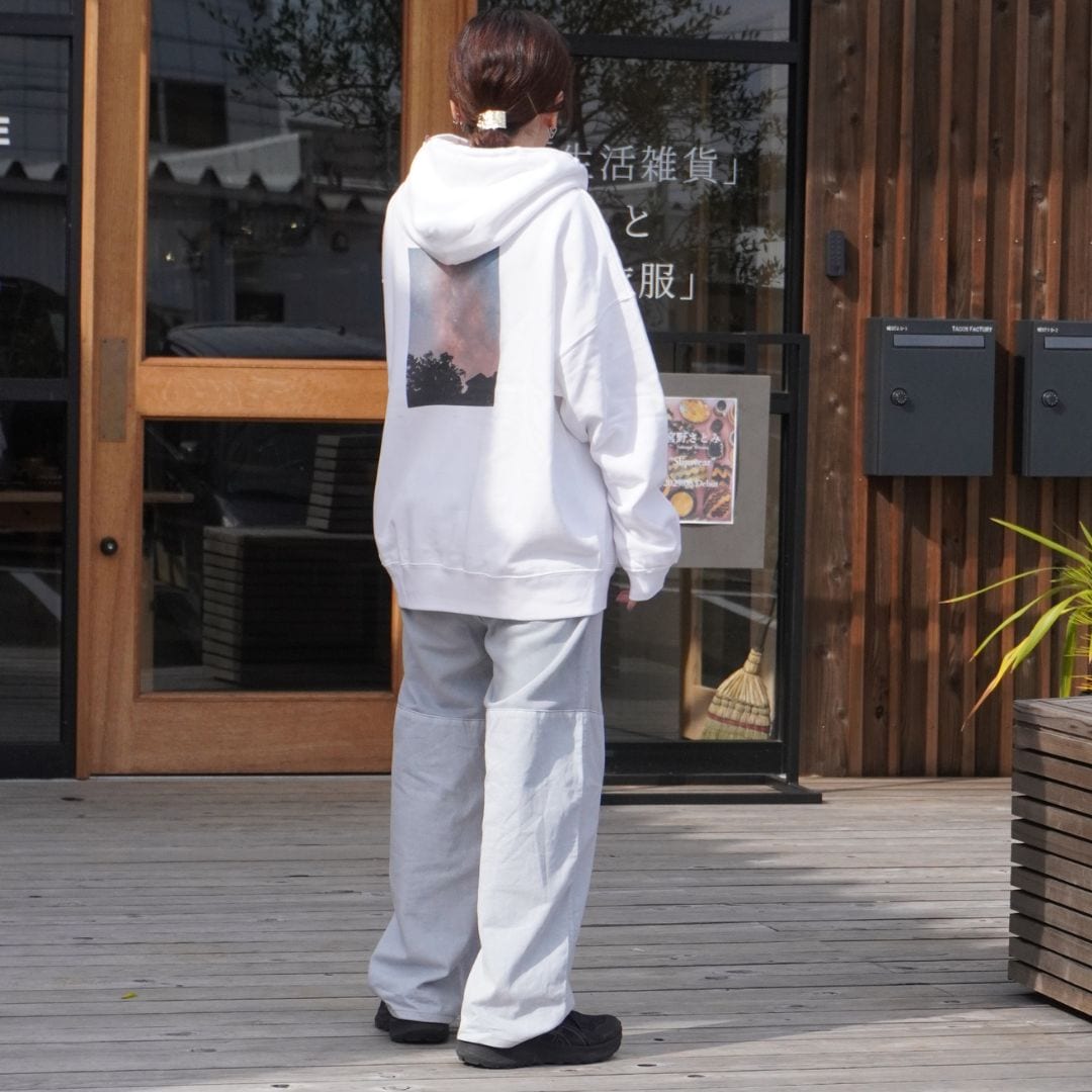 ルームウェア、ワンマイルウェア、ワークウェアなど様々なご用途でお使い頂けるよう、サイジングは少しゆったりとしたリラックスシルエット。生地は裏毛(パイル)で10オンスなので、非常に快適な着心地で大半の時期にお使い頂けます。